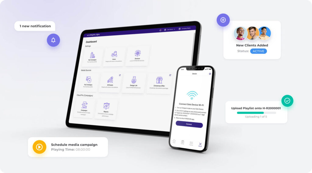 Every system includes our integrated software suite a powerful combination of web, mobile, and desktop tools for end-to-end content creation, management, and display control.